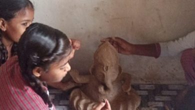 गणेश उत्सव पर्व को लेकर छात्र छात्राओं के द्धारा बनाई जा रही मिट्टी से गणेश प्रतिमा।