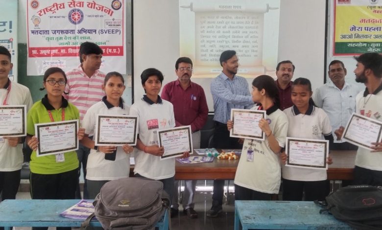 युवा कार्यक्रम एवं खेल मंत्रालय भारत सरकार नेहरू युवा केंद्र संगठन भिंड एवं राष्ट्रीय सेवा योजना, शासकीय उत्कृष्ट उच्चतर माध्यमिक विद्यालय क्र. 1 इकाई द्वारा एनएसएस कार्यक्रम अधिकारी डॉ धीरज सिंह गुर्जर एवं जिला युवा अधिकारी आशुतोष साहू के निर्देशन में मतदाता जागरूकता कार्यक्रम एवं कार्यशाला का आयोजन विद्यालय परिसर के सेमिनार हॉल में किया गया।