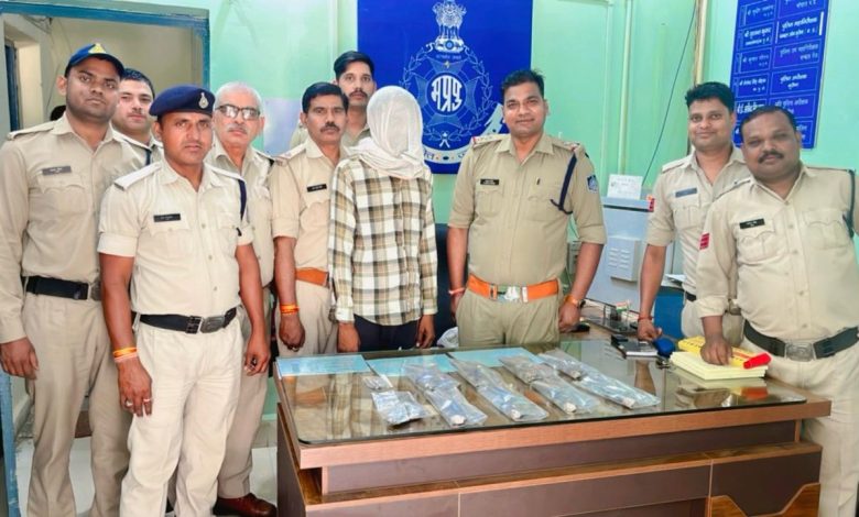 आगामी लोकसभा चुनाव 2024 को दृष्टिगत रखते हुए पुलिस अधीक्षक मुरैना शैलेन्द्र सिंह चौहान द्वारा अवैध हथियार निर्माताओं एवं तस्करों, अवैध शराब-मादक पदार्थों का निर्माण एवं बिक्री पर प्रभावी कार्यवाही करने, ईनामी फरारी बदमाशों एवं स्थायी वारंटियों की धरपकड़ हेतु संपूर्ण मुरैना जिले में विशेष अभियान संचालित कराया जा रहा है। उक्त अभियान के तारतम्य में अति. पुलिस अधीक्षक मुरैना डॉ. अरविन्द सिंह ठाकुर के निर्देशन एवं आदर्शकांत शुक्ला (भापुसे) एसडीओपी बामौर के कुशल मार्गदर्शन में निरीक्षक अमित सिंह भदौरिया थाना प्रभारी बामौर द्वारा अवैध हथियार के कारोबार में लिप्त व्यक्तियों के विरूद्ध प्रभावी कार्यवाही करने के लिए मुखविर तंत्र सक्रिय किया गया। दिनांक दिनांक 24.04.24 को थाना बामौर पुलिस को जरिए मुखबिर सूचना प्राप्त हुई कि विजयपुरा मोड फैक्ट्री एरिया बामौर एबीरोड बामौर से एक व्यक्ति बडी संख्या में अवैध हथियार तस्करी हेतु ले जाने की फिराख में खडा हुआ है, मुखबिर की उक्त सूचना पर तत्काल कार्यवाही करते हुए थाना बामौर पुलिस द्वारा मुखबिर द्वारा बताए स्थान पर पहुंचकर तलाश की गई तो एक व्यक्ति हाथ में एक प्लास्टिक की हरे रंग की बोरी लिए हुए खड़ा दिखाई दिया, जो पुलिस को देखकर भागने लगा, जिसे पुलिस द्वारा घेरकर पकड़ा और प्लास्टिक की हरे रंग की बोरी की तलाशी ली तो उसके अंदर 315 बोर के 9 देशी कट्टे तथा 02 जिन्दा राउण्ड रखे मिले जिनके संबंध में वैध लायसेंस चाहने पर लायसेंस न होना बताया आरोपी का उक्त कृत्य धारा 25.27 आर्म्स एक्ट के तहत दंडनीय होने से मौके पर से उक्त अवैध हथियारों एवं राउण्डों को जप्त कर आरोपी को गिरफ्तार कर थाना वापसी पर आरोपी के विरुद्ध अपराध क्रमांक 161/24 धारा 25.27 आर्म्स एक्ट का पंजीबद्ध कर विवेचना में लिया गया। यह कि उक्त आरोपी के विरूद्ध थाना बामौर के अपराधों में माननीय न्यायालय मुरैना द्वारा प्रकरण क्रमांक 2113/13, 2114/13, 2116/13, 2116/17 में 04 स्थाई वारंट भी जारी किए गए थे, जो तामीली हेतु लंबित थे। आरोपी के विरूद्ध अन्य थानों में भी वारंट लंबित हैं जिनके संबंध में जानकारी प्राप्त की जा रही है एवं आरोपी से उक्त अवैध कट्टे व राउण्ड लाने ले जाने के संबंध में भी पूछताछ की जा रही है।