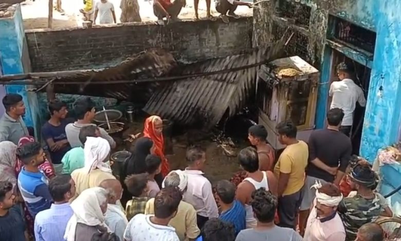 सिलेंडर लीकेज होने से घर में लगी आग, गृहस्ती का सामान जलकर हुआ खाक, पुलिस ने ग्रामीणों की मदद से आग पर पाया काबू।
