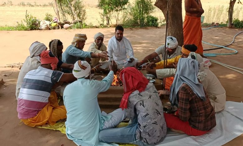 भिंड में भीषण गर्मी से निजात के लिए अनोखा उपाय, मंदिर में कराया हवन, मां से की विनती।