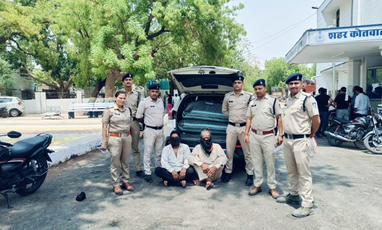 पुलिस अधीक्षक जिला मुरैना शैलेन्द्र सिंह चौहान द्वारा जिले में अवैध मादक पदार्थ / शराब की तस्करी करने वालों, विक्रय करने वालों एवं अवैध मादक पदार्थ का भण्डारण करने वालों के विरूद्ध प्रभावी कार्यवाही करने हेतु संपूर्ण मुरैना जिले में विशेष अभियान संचालित कराया जाकर जिले के समस्त थाना प्रभारियों को अवैध मादक पदार्थ की तस्करी एवं विक्रय के कारोबार में लिप्त व्यक्तियों के विरूद्ध प्रभावी कार्यवाही किये जाने हेतु निर्देशित किया गया। उक्त अभियान के तारतम्य में अतिरिक्त पुलिस अधीक्षक मुरैना डॉ. अरविन्द सिंह ठाकुर के निर्देशन एवं नगर पुलिस अधीक्षक राकेश गुप्ता के मार्गदर्शन में उनि. शिवम चौहान इन्चार्च थाना प्रभारी कोतवाली को दिनांक 31.05.24 को जरिये मुखबिर सूचना प्राप्त हुई कि एक कार के माध्यम से अवैध मादक पदार्थ डोडाचूरा की तस्करी की जा रही है उक्त सूचना पर कार्यवाही करते हुए इन्चार्ज थाना प्रभारी कोतवाली द्वारा मय हमराह फोर्स के मुखबिर द्वारा बताये स्थान ट्रैफिक थाने के पास ओवर ब्रिज के नीच सर्विस रोड मुरैना पर वाहन चैंकिग लगायी गयी, दौराने चैकिंग कुछ समय बाद ग्वालियर की तरफ से एक सफेद रंग की क्रेटा गाडी रॉग साइड से आती दिखाई दी, उक्त क्रेटा कार चालक द्वारा पुलिस चैकिंग देखकर हडबडाकर गाडो को वापस लोटाने का प्रयास करने लगा। उक्त वाहन चालक की गतिविधियां सन्दिग्ध होने से हमराही फोर्स की मदद से घेरकर गाडो को रोका गया व उक्त व्यक्ति से नाम पत्ता पूछा जिससे वापस भागने के संबंध में पूछताछ की गई तो उक्त व्यक्ति ने कोई सन्तोषजनक जवाव नहीं दिया जिसके बाद उक्त क्रेटा गाडी क्रमांक HR 70 E 3773 की तलाशी ली गयी तो ड्रायवर के पीछे की सीट पर से 11 काले एवं 02 सफेद रंग की कुल 13 प्लासिटक की बोरिया रखी मिली, उक्त सभी बोरियो को प्रथक प्रथक खोलकर चक किया गया तो बोरियो के अन्दर घास पत्ती जैसा छिलके नुमा डोडा चूा जैसा पदार्थ भरा हुआ था, तब उक्त दोनो सन्देहियान से हिकमत अमली से पूछा तो उक्त सभी 13 बोरिया में अवैध मादक पदार्थ डोडाचूरा भरा होना बताया, जिसे मौक पर समक्ष पंचान रगडकर एवं सूंघकर हमराही फोर्स को दिखाकर उसके रंग, गन्ध, आकार व प्रशिक्षण म प्राप्त अनुभव के आधार पर उक्त सभी बोरिया में भरा अवैध मादक पदार्थ डोडा चूरा भरा होना पाया गया, जिसके बाद उक्त संन्देहियान स डोडाचूरा का परिवहन करने के संबंध में वैध दस्तावेज चाहे गये तो अपने पास कोई वैध दस्तावेज नही होना बताया गया। जिसके बाद आरोपीगण के कब्जे से क्रेटा गाडी म रखी सभी प्लास्टिक की बोरिया का सत्यापित तोल काटे की मदद से प्रथक प्रथक बजन किया गया जिसका कुल वजन 205.300 किलो ग्राम कीमती करीबन 04 लाख रुपये है। भारत सरकार के व्दारा दिनांक 23.12.22 को एनडीपीएस एक्ट मे