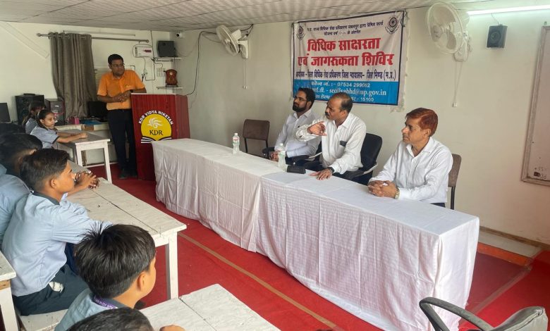 मध्यप्रदेश राज्य विधिक सेवा प्राधिकरण, जबलपुर तथा राजीव कुमार अयाची, प्रधान जिला एवं सत्र न्यायाधीश/अध्यक्ष जिला विधिक सेवा प्राधिकरण, भिण्ड के आदेशानुसार एवं हिमांशु कौशल, जिला न्यायाधीश/सचिव जिला विधिक सेवा प्राधिकरण भिण्ड के मार्गदर्शन में के.डी.आर. विद्या निकेतन हाई स्कूल, भिण्ड में विधिक साक्षरता शिविर का आयोजन मुख्य रूप से दिनेश कुमार खटीक, जिला न्यायाधीश भिण्ड, की अध्यक्षता में एवं सौरभ कुमार दुबे, जिला विधिक सहायता अधिकारी भिण्ड की उपस्थिति में नालसा (वाणिज्यिक यौन शोषण पीड़ितों के लिए विधिक सेवाएं योजनाएं 2015) के अंतर्गत पॉक्सो एक्ट 2012, एवं गरीबी उन्मूलन योजना एवं पोस्ट ऑफिस के माध्यम से विधिक सेवाएं योजना प्रदान किए जाने के आलोक में विधिक साक्षरता एवं जागरूकता शिविर का आयोजन किया गया।