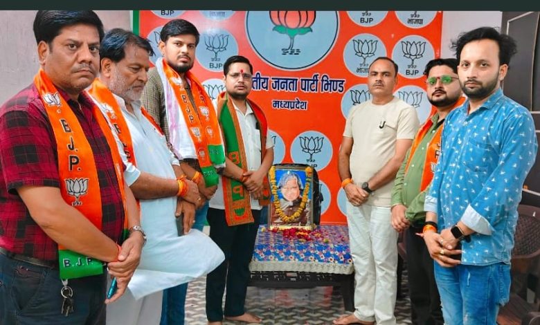 भिंड : भारतीय जनता पार्टी के कार्यकर्ताओं ने प्रख्यात वैज्ञानिक एवं पूर्व राष्ट्रपति डॉ. एपीजे अब्दुल कलाम की पुण्यतिथि पर उन्हें श्रद्धांजलि दी। इस अवसर पर भाजपा कार्यकर्ताओं ने भाजपा जिला कार्यालय पर डॉ एपीजे अब्दुल कलाम की तस्वीर पर माल्यार्पण कर श्रद्धा सुमन अर्पित किए।