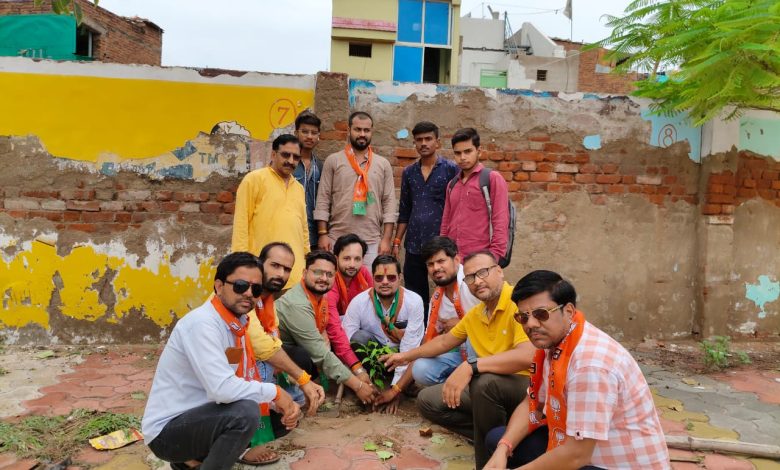 एक पेड़ मां के नाम अभियान में भाजपा कार्यकर्ताओं ने किया पौधरोपण।