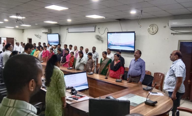 विभाजन विभीषिका स्मृति दिवस के अवसर पर कलेक्ट्रेट सभाकक्ष में मौन रखकर दी गई श्रद्धांजलि।