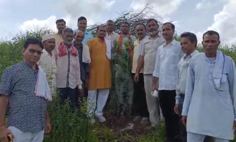 सगरा ताल मंदिर परिसर के तालाब किनारे कछवाह घार विकास सुधार समिति ने ट्री गार्ड सहित लगाए पौधे।