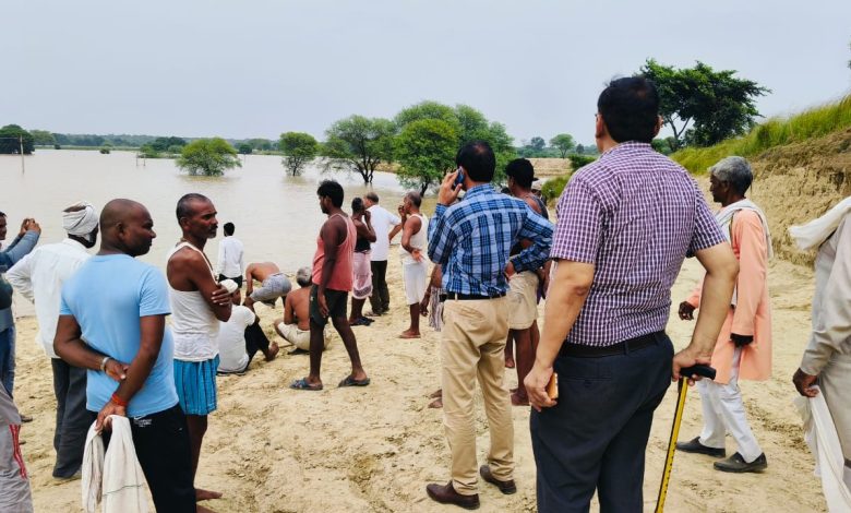 कलेक्टर ने ग्राम मीसा में क्वारी नदी का जल स्तर बढ़ने से हुए जलभराव का किया निरीक्षण।