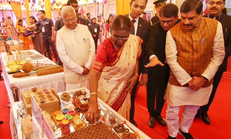 महामहिम राष्ट्रपति द्रौपदी मुर्मु ने उज्जैन के ग्राम ढेंडिया में रुद्राक्ष होटल में स्वच्छता ही सेवा-2024 अभियान अन्तर्गत लगाई गई प्रदर्शनी का अवलोकन किया। राष्ट्रपति मुर्मु ने अनुपयोगी कपड़ों से नवजात बच्चों के लिए बनाई गई दुलार किट, नारियल के अपशिष्ट और गोबर से बनाये गये उत्पाद, सूखे कचरे का सही निपटारा कर बनाये गये बहुउपयोगी उत्पाद और श्रीमहाकालेश्वर मंदिर में अर्पित किए गये फूलों और निर्माल्य से बने उत्पाद, अगरबत्ती एवं अन्य उत्पाद बनाने की मशीन, निर्माल्य प्र-संस्करण, सफाई मित्रों के लिए सुरक्षा उपकरण एवं संसाधन और शून्य अपशिष्ट आयोजन के स्टॉल का अवलोकन किया।