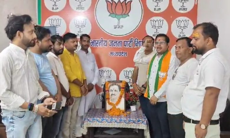 भिंड : जनसंघ के संस्थापक, प्रखर राष्ट्रवादी एवं महान विचारक पंडित दीनदयाल उपाध्याय की 108वीं जयंती को भाजपा कार्यकर्ता समर्पण दिवस के रूप में मनाया। इस अवसर पर भाजपा कार्यकर्ताओं ने जिला कार्यालय पर पंडित दीनदयाल उपाध्याय की तस्वीर पर माल्यार्पण कर याद किया एवं भाजपा कार्यकर्ता और पदाधिकारी ने सदस्यता अभियान के तहत घर जाकर नए सदस्यों को जोड़ा।