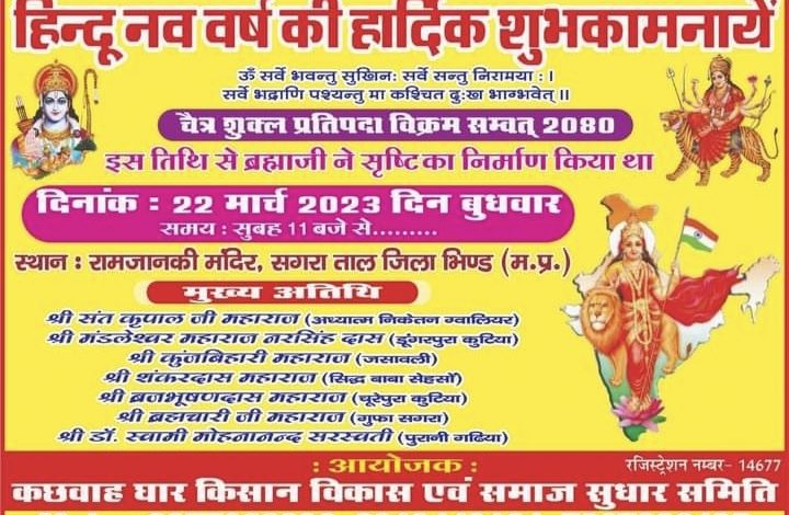 कछवाह घार विकास समिति के द्वारा 22 मार्च को धूमधाम से मनाया जाएगा हिंदू नव वर्ष।