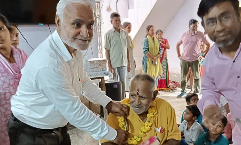 वृद्धजनों को शॉल, श्रीफल भेंट कर किया गया सम्मानित।