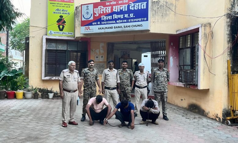 भिंड एसपी डॉ असित यादव के निर्देशन, सीएसपी अरूण उइके के मार्गदर्शन में देहात थाना प्रभारी मुकेश शाक्य एवं उनकी पुलिस टीम ने अंधे कत्ल का खुलासा कर पांच आरोपीयों में से तीन आरोपीयों को किया गिरफ्तार।