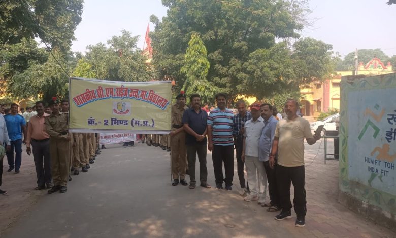 प्रभात फेरी 9 बजे उत्कृष्ट विद्यालय से परेड चौराहे , इंदिरा गांधी चौराहे सिटी कोतवाली होकर निराला रंग विहार तक निकाली गई,,जिसे हरी झंडी दिखाकर जिला शिक्षा अधिकारी आर डी मित्तल, प्राचार्य पी एस चौहान एवम खंड शिक्षा अधिकारी उमेश भदौरिया ने संयुक्त रुप से रवाना किया। रैली में एनसीसी और एनएसएस के छात्रों के साथ सीएम राइज उ.मा.वि.क्रमांक 2 एवं उत्कृष्ट विद्यालय क्रमांक 1 भिण्ड के छात्रों ने सहभागिता की।