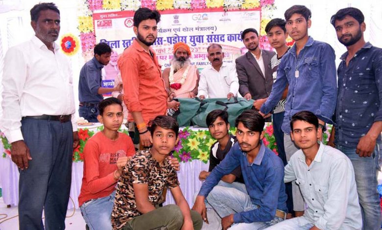 भिण्ड। युवा कार्यक्रम एवं खेल मंत्रालय भारत सरकार द्वारा संचालित नेहरू युवा केन्द्र संगठन जिला भिण्ड के तत्वावधान में एवं दलित ग्रामीण युवा मण्डल सारूपुरा के सहयोग से जिला स्तरीय आस पड़ोस युवा संसद कार्यक्रम का आयोजन किया गया। कार्यक्रम में मुख्य अतिथि जिला पंचायत सदस्य हरीशंकर नरवरिया एवं विशिष्ट अतिथि के रूप में राष्ट्रीय स्तर टीओटी अंगद सिंह यादव, ग्राम सरपंच प्रतिनिधि शंकर मुद्गल, रामस्वरूप पटेल, रामावतार दैपुरिया, तांती सिंह भदौरिया और नेहरू युवा केन्द्र के जिला युवा अधिकारी आशुतोष साहू उपस्तिथ थे। कार्यक्रम की अध्यक्षता श्रीश्री 1008 श्री महंत ओमानंद सरस्वती महाराज ने की। कार्यक्रम का शुभारंभ्ज्ञ स्वामी विवेकानंद के छायाचित्र के समक्ष माल्यार्पण और दीप प्रज्ज्वलन कर किया गया। आशुतोष शर्मा ने मंच संचालन करते हुए सभी अतिथियों का स्वागत सत्कार करं स्मृति चिन्ह भेंट किए।