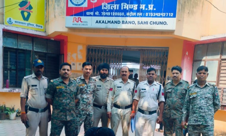 भिंड पुलिस अधीक्षक डॉ असित यादव के निर्देशन व अतिरिक्त पुलिस अधीक्षक संजीव पाठक, नगर पुलिस अधीक्षक अरूण कुमार के मार्गदर्शन में थाना प्रभारी देहात निरी. मुकेश शाक्य के नेतृत्व जिला भिण्ड में अवैध शराब, अवैध हथियार व गुण्डा बदमाशों पर लगातार अभियान चलाकर धरपकड की कार्यवाही जारी है। इसी तारतम्य में मुखबिर से सूचना पर से बीटीआई डाईट स्कूल के ग्राउण्ड में से एक आरोपी को एक 315 बोर का कटटा व एक जिन्दा राउण्ड के साथ गिरफ्तार कर लिया गया तथा आरोपी के विरूद्ध अपराध पंजीबद्ध कर विवेचना में लिया गया आरोपी को उपलब्ध हुये अवैध शस्त्र के स्त्रोत व खरीद फरोख्त का पता लगाया जा रहा है।