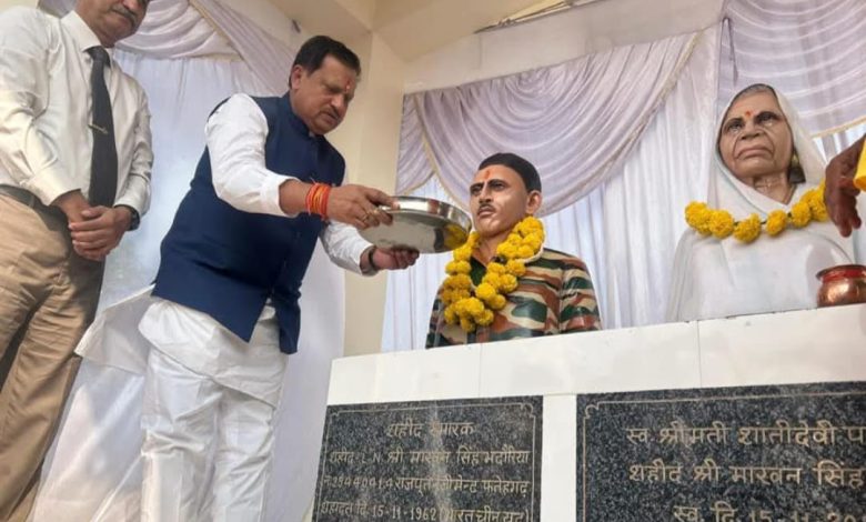 अटेर विधानसभा के ग्राम नहारा में भारत माता के वीर सपूत शहीद माखन सिंह भदौरिया, राजपूत रेजिमेंट फतेह गढ़ की प्रतिमा एव साथ ही उनकी धर्मपत्नी स्वर्गीय शांति देवी प्रतिमा का अनावरण किया। शहीद माखन सिंह भदौरिया जी भारत – चीन युद्ध 1962 में शहीद हुए थे। पूर्व मंत्री अरविंद सिंह भदौरिया ने कहा कि देश की रक्षा के लिए सैना में सबसे ज्यादा जबान भिंड के ही तैनात हैं और देश की रक्षा के लिए भी सर्वाधिक भिंड के वीर सभी सपूतों ने ही बलिदान दिया है।कार्यक्रम के अवसर पर उ.प्र. इटावा सदर विधायक सरिता भदौरिया, ए के उपाध्याय सैनिक कल्याण अधिकारी भिण्ड भी उपस्थित रहे।इस आयोजन में बड़ी संख्या में ग्रामीण एवं क्षेत्रवासी मौजूद रहे।