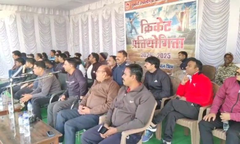 पुलिस एवं पत्रकार मैत्रीपूर्ण क्रिकेट टूर्नामेंट में उप विजेता पत्रकार टीम ने सहायक जनसंपर्क अधिकारी को ट्राफी भेंट की।