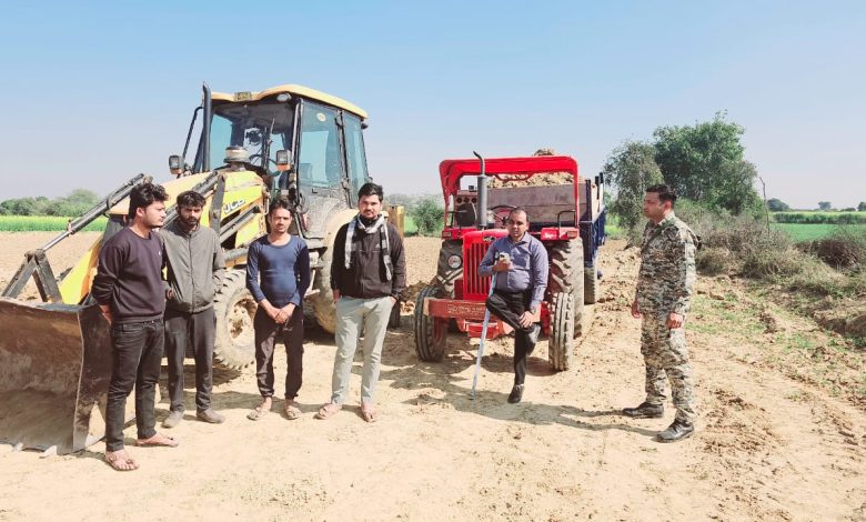 बिना अनुमति प्राइवेट रकवे से मिट्टी उत्खनन करते पाए जाने पर जेसीबी सहित ट्रैक्टर को थाने में रखवाया।