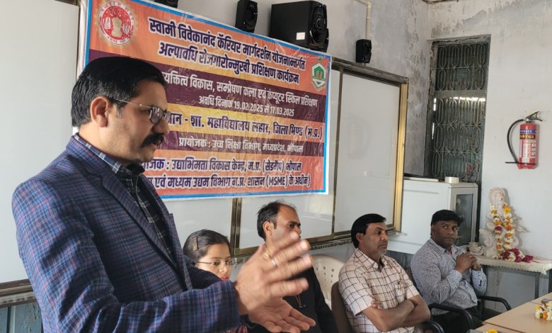 उद्यमिता विकास केंद्र मध्य प्रदेश सेडमैप एवं शासकीय महाविद्यालय लहार के संयुक्त तत्वाधान में अल्पावधि रोजगारोन्मुखी प्रशिक्षण कार्यक्रम का शुभारंभ प्राचार्य दोहरे द्वारा किया गया।