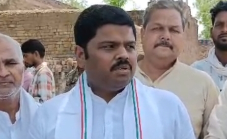 रेप पीड़िता परिवार से मिलने पहुंचे कांग्रेस नेता राहुल भदौरिया।