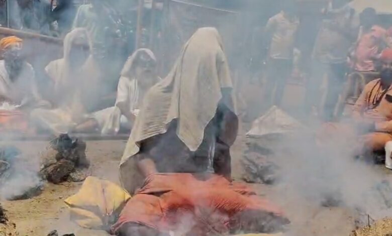नेशनल हाईवे के चौड़ीकरण एवं गौ अभ्यारण की मांग को लेकर चौथे दिन भी प्रदर्शन जारी।आग की धूनी के बीच बैठकर संत कर रहे प्रदर्शन।