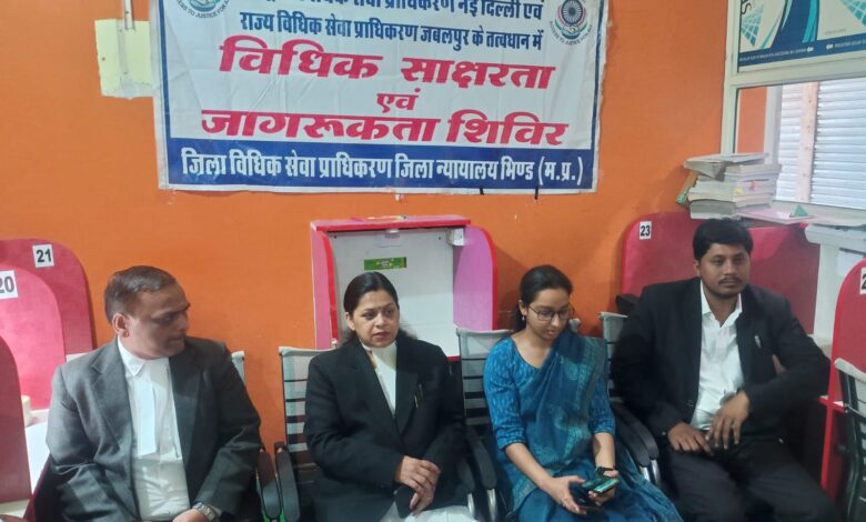 मध्यप्रदेश राज्य विधिक सेवा प्राधिकरण, जबलपुर के आदेशानुसार तथा उमेश पाण्डव, प्रधान जिला एवं सत्र न्यायाधीश/अध्यक्ष जिला विधिक सेवा प्राधिकरण, भिण्ड के कुशल मार्गदर्शन में ए वन लाइब्रेरी, अटेर रोड भिण्ड में विधिक साक्षरता एवं जागरूकता शिविर का आयोजन किया गया।