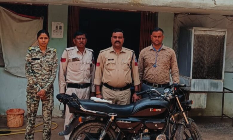बरामद मसरुकाः-01 एक मोटर सायकिल ।02 एक कट्टा 315 बोर। 03 02 राउण्ड जिंदा 315 बोर।
