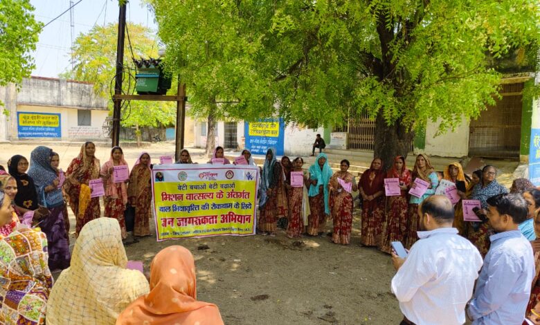 बाल भिक्षावृत्ति उन्मूलन हेतु गठित सर्वे दल द्वारा रौन में जन जागरूकता का कार्य किया गया एवं बाल विवाह रोकने हेतु शपथ।