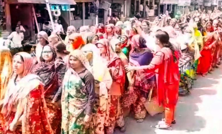 आंगनबाड़ी कार्यकर्ताओं-सहायिकाओं ने रैली निकालकर किया सरकार का विरोध