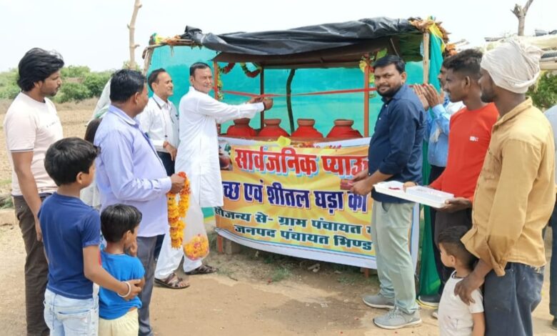 जल गंगा संवर्धन अभियान के अंतर्गत सीईओ जनपद भिण्ड श्री राजीव मिश्रा ने बीहड़ क्षेत्र होने, दूर-दराज तक पेयजल की व्यवस्था नहीं होने एवं भीषण गर्मी को ध्यान में रखते हुए सेवा भाव के उद्देश्य से ग्राम पंचायत मीसा में मुख्य मार्ग पर राहगीरों की प्यास बुझाने के लिए सार्वजनिक प्याऊ की स्थापना की। पानी की प्याऊ से राहगीरों को अब शुद्ध पीने का शीतल जल मिलेगा। यह सिर्फ प्यास बुझाने की पहल नहीं, बल्कि जल संरक्षण और जागरूकता की दिशा में एक सार्थक कदम है। जनपद सदस्य सितम्बर सिंह, सीईओ जनपद भिण्ड राजीव मिश्रा द्वारा निःशुल्क प्याऊ जल का शुभारंभ किया गया।