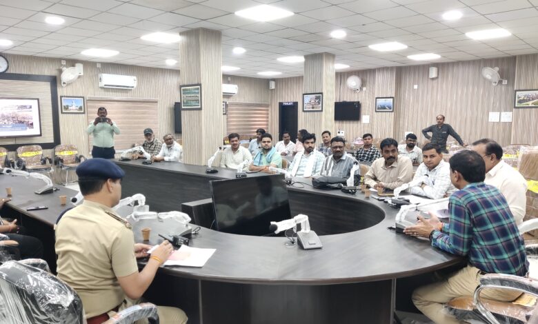 कलेक्टर संजीव श्रीवास्तव की अध्यक्षता में शहरी क्षेत्र के मैरिज गार्डन संचालकों की बैठक कलेक्टर कार्यालय भिण्ड के सभागार में आयोजित की गई। इस दौरान सीएमओ भिण्ड यशवंत वर्मा, यातायात प्रभारी राघवेन्द्र भार्गव सहित अन्य अधिकारी उपस्थित रहे।