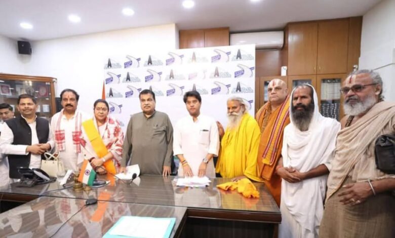 भिंड ग्वालियर नेशनल हाईवे के चौड़ीकरण की उम्मीद जगी, केंद्रीय सड़क परिवहन मंत्री से ज्योतिरादित्य सिंधिया,भिंड सांसद, भाजपा जिला अध्यक्ष एवं संतों ने की मुलाकात।