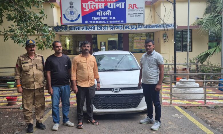 पुलिस अधीक्षक भिण्ड डॉ० असित यादव के निर्देशन में एवं अति० पुलिस अधीक्षक संजीव पाठक एवं अनुविभागीय अधिकारी (पुलिस) मेहगाँव संजय कोच्छा के मार्गदर्शन में थाना गोरमी पुलिस ने एक होण्डई कंपनी की कार मय 08 पेटी देशी शराब मय मोबाइल फोन के किया जप्त। दिनांक 29.06.25 को थाना प्रभारी गोरमी को दौराने इलाका गस्त मुखबिर से सूचना मिली की एक सफेद रंग की विना नम्बर की होण्डई औरा कार मोहनपुरा से गोरमी की तरफ आ रही है जिसमे अवैध शराब रखी है। सूचना की तस्दीक में मय फोर्स के उक्त ओरा कार को ओझा आरा मशीन कचनाव रोड पर घेरा बंदी कर रोका गया तो वाहन सवार पुलिस को देखकर गाडी को सडक पर खड़ा कर अंधेरे का फायदा उठाकर खेतो की तरफ भाग गया। बाद कार की तलाशी ली गई तो कार में तीन पेटी देशी मदिरा प्लेन की एवं 5 पेटी देशी मशाला मदिरा की कुल शराब 8 पेटी (400 क्वाटर) मात्रा 72 लीटर कीमती 40000 रुपये एवं ऑरा कार की कीमत 10 लाख रुपये, मोबाइल कीमती 10 हजार रुपये का समक्ष पंचानों के जप्त किया गया। अज्ञात आरोपी के विरुद्ध अपराध धारा 34(2) आबकारी एक्ट का कायम कर विवेचना में लिया गया। आरोपी की तलाश जारी है।