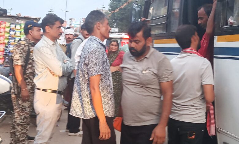 भिंड कलेक्टर संजीव श्रीवास्तव ने लहार चुंगी चौराहे पर एक यात्री बस में क्षमता से अधिक यात्रियों को चढ़ा देखकर तत्काल बस को रुकवाया।