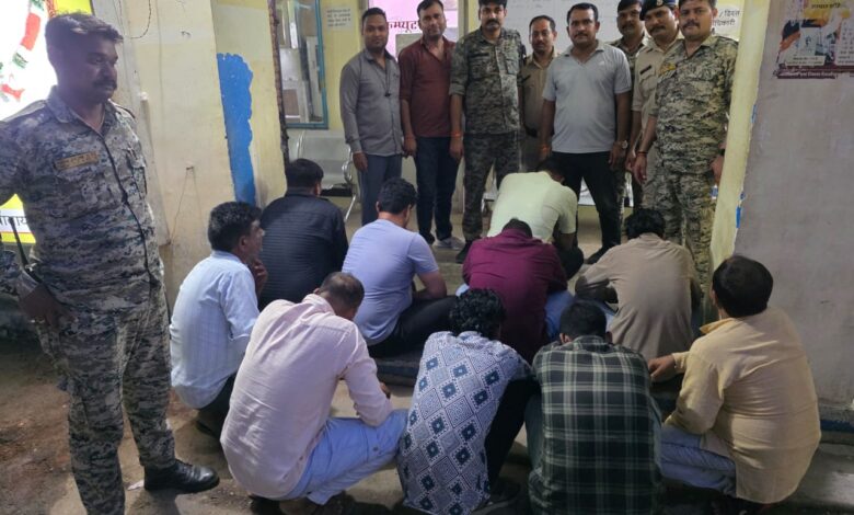 भिण्ड पुलिस ने घर में संचालित जुआ के फड पर दबिश देकर 11 जुआरियों को जुआ खेलते हुये पकड़ा।