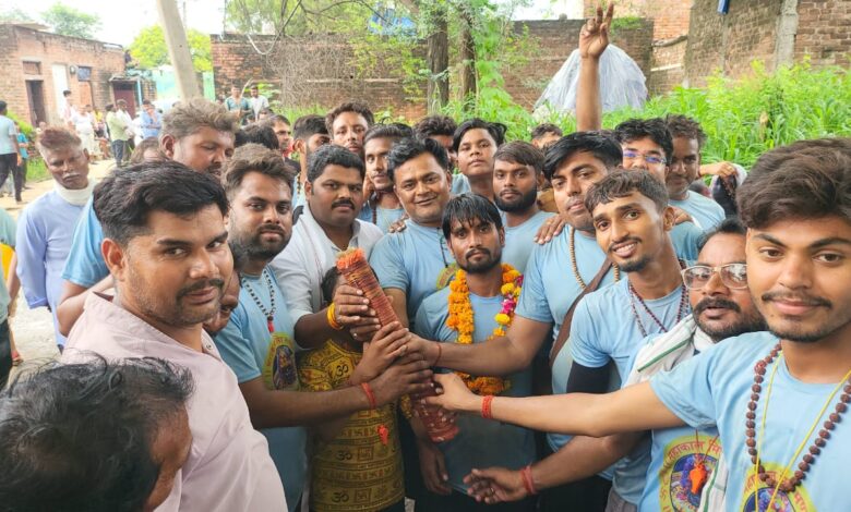 कांग्रेस नेता राहुल भदौरिया ने रबियापुरा में भोले बाबा पर डाक कांवर का जल चढ़ाया, कांवरियों पर पुष्प वर्षा की।