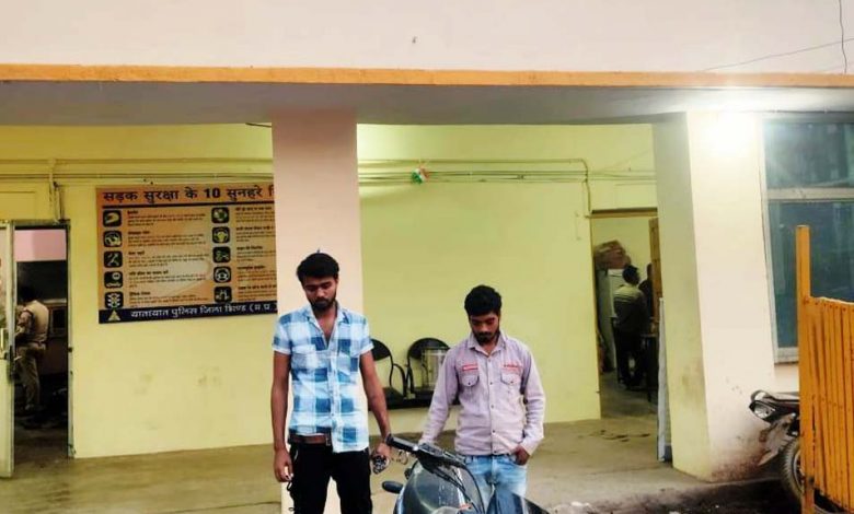 जानकारी के अनुसार गत 24 मार्च को फरियादी विजय कुमार पुत्र राजवीर बरुआ उम्र 50 साल निवासी महावीर गंज भिण्ड ने शहर कोतवाली थाने में रिपोर्ट दर्ज कराई थी कि रात्रि साढ़े आठ बजे कोई अज्ञात चोर मेरी बजाज प्लेटीना मोटर साइकिल क्र. एम.पी.30 एम.के.4157 मेला ग्राउण्ड भिण्ड के पास से चुरा ले गया। जिस पर अपराध क्र.99/23 धारा 379 भादंवि के तहत प्रकरण दर्ज कर विवेचना में लिया गया था। रविवार को शहर कोतवाली निरीक्षक शिव सिंह यादव को जरिए मुखरिबर सूचना मिली कि दो व्यक्ति एक चोरीकी मोटर साइकिल बेचने के लिए गौरी किनारे पर खड़े हैं। थाना प्रभरी ने तत्काल टीम गठित कर मौके पर रवाना की, मौके पर पहुंची पुलिस टीम ने दो आरोपियों को गिरफ्तार कर उनके कब्जे से मोटर साइकिल क्र. एम.पी.30 एम.के.4157 बरामद की है। पकड़े गए दोनों आरोपी आदतन अपराधी हैं, जिनसे चोरी की अन्य मोटर साइकिलों संबंध में पूछताछ की जा रही है। आरोपियों की गिरफ्तारी में निरीक्षक शिवसिंह यादव, उपनिरीक्षक अतुल भदौरिया, प्रधान आरक्षक राकेश भदौरिया, रमाकांत शर्मा, आरक्षक अभिषेक यादव, दीपक राजावत, अमन राजावत, सुनील की सराहनीय भूमिका रही।