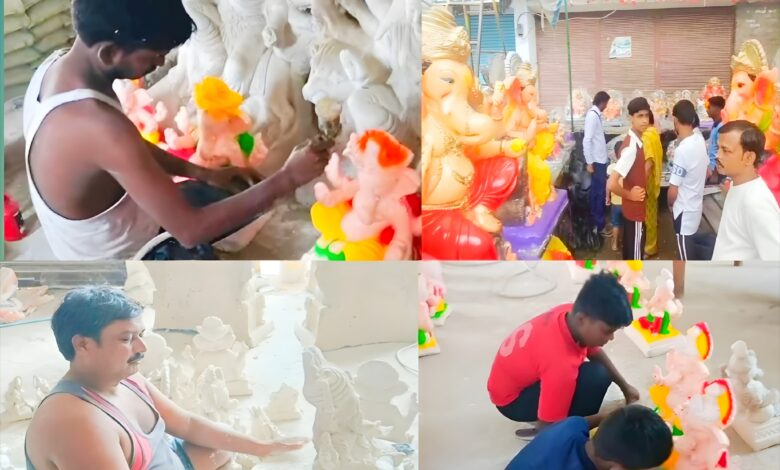 गणेश चतुर्थी से पहले मूर्तिकार प्रतिमाओं को दे रहे अंतिम रूप, बाजार में गणेश प्रतिमाओं की खरीदारी शुरू, मिट्टी एवं इको फ्रेंडली रंगों से तैयार गणेश प्रतिमाओं को लोग अधिक पसंद कर रहे।