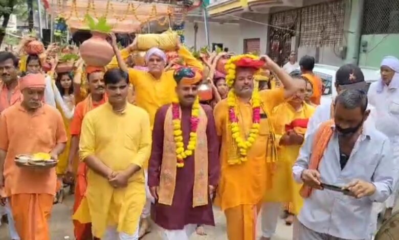 बालाजी दरबार की भिंड में निकाली गई विशाल कलश यात्रा के बाद 7 वीं श्रीमद् भागवत कथा का शुभारंभ।