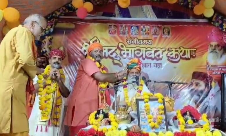 बालाजी दरबार कथा में शामिल हुए दंदरौआ सरकार, व्यास पीठ से सुनाई हनुमंत कथा, पांचवें दिन श्रोताओं की उमड़ी भीड़।