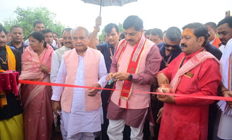 मुख्यमंत्री डॉ मोहन यादव ने शनिचरा मंदिर के नवनिर्मित तोरण द्वार का किया उद्घाटन।