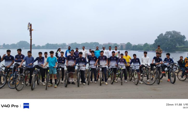 प्रधानमंत्री नरेंद्र मोदी के आव्हान पर 3 दिवसीय एक घंटा खेल के मैदान में अभियान के तहत तीसरे और अंतिम दिन नवादा बाग भिंड से शहर के मुख्य मार्गों से होते हुए गौरी सरोवर भिंड तक साइकिल रैली आयोजन किया गया। साइकिल रैली को हरी झंडी रविंद्र वास्कले अनुविभागीय अधिकारी पुलिस अनुभाग अटेर ने दिखाकर रवाना किया। साइकिल रैली में खिलाड़ियों के साथ प्रमुख रूप से दिलीप गुप्ता जिला न्यायाधीश भिंड, राधे गोपाल यादव प्रबंधक किशोरी स्पोर्ट्स एवं बोट क्लब भिंड, रवि शेखर कटारे प्रशिक्षक जिला क्रिकेट एसोसिएशन भिंड, सोनपाल यादव प्राचार्य किशोरी पब्लिक स्कूल इत्यादि ने भी साइकिल चलाकर रैली में सम्मिलित हुए।