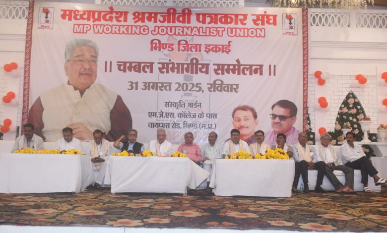 भिंड मध्य प्रदेश श्रमजीवी संघ का जिलाध्यक्ष गणेश भारद्वाज एवं उनकी टीम के द्बारा पत्रकारों के हितों में संभागीय नहीं बल्कि प्रदेशस्तरीय रूपरेखा वाला सफल कार्यक्रम संपन्न।
