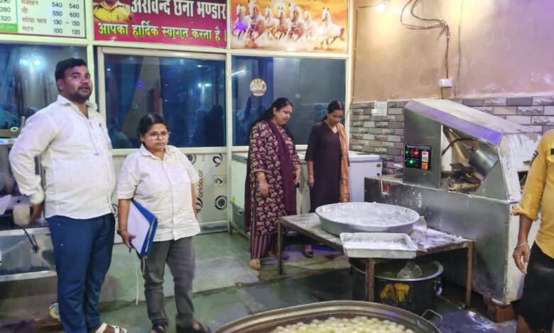 कलेक्टर भिण्ड के निर्देशन में खाद्य सुरक्षा अधिकारी रेखा सोनी, रीना बंसल एवं किरन सेंगर द्वारा दीपावली त्यौहार को दृष्टिगत ग्राम फूप स्थित प्रमोद गोयल की डेयरी से घी का नमूना, आर. बिहारी ब्रदर्स महावीर गंज प्रो. रामकुमार गुप्ता से घी, पंडित रामबाबू घी भण्डार प्रो. जय शर्मा से मावा, पनीर एवं घी, पंडित स्वीट्स प्रो. शिवमोहन शर्मा से बेसन लड्डू, चूरमा लड्डू, सोनपपड़ी, मिल्क केक का नमूना, राधिका प्रोविजन पुस्तक बाजार प्रो. प्रकाश शिवहरे से मावा, पनीर, नमकीन का नमूना, जैन मिष्ठान भंडार प्रो. नीतेश कुमार जैन पनीर, बेसन का लड्डू, नमकीन का नमूना एवं वीरेश बघेल फर्म- पंडित रामबाबू मावा भंडार पुस्तक बाजार से मावा एवं पनीर का नमूना, कमल कुमार जैन फर्म – बाबूराम घी वाले पुस्तक बाजार से घी का नमूना, जैन स्वीट्स पुस्तक बाजार प्रो. अजीत जैन से मीठी बूंदी एवं बर्फी का नमूना एवं स्वतंत्र नगर एमजेएस कॉलेज के सामने अरविन्द छैना भण्डार प्रो. अरविन्द बघेल से छैना, रसगुल्ला, पनीर एवं घी का नमूना जांच वास्ते लिया गया। खाद्य सुरक्षा विभाग द्वारा दो मिलावटखोरों का लाइसेंस निलंबित कर डेयरियों को भी सील किया। ब्रजेश जैन फर्म ब्रजेश डेयरी ग्राम सौंधा तहसील गोरमी एवं प्रदीप जैन फर्म जैन डेयरी ग्राम सौंधा पर कार्रवाई कर मावा, पनीर, रि. सोयाबीन ऑयल, घी एवं वनस्पति के नमूने लिए। नमूना उपरांत शेष बचे मावा, पनीर, घी, वनस्पति एवं रिफाइंड को जप्त किया गया।