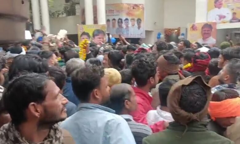 जन्मदिन पर जमकर हुई आतिशबाजी और फूलों की वर्षा एक दूसरे को खिलाई मिठाई।