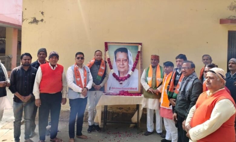 भाजपा कार्यकर्ताओं ने पुण्यतिथि पर राजमाता को दी पुष्पांजलि।