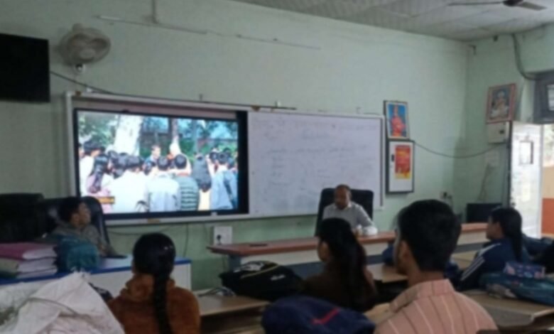 प्रधानमंत्री कॉलेज ऑफ एक्सिलेंस भिंड में प्रधानमंत्री नरेंद्र मोदी द्वारा विद्यार्थियों के साथ ’परीक्षा पे चर्चा’ विषय का ऑनलाइन वीडियो संवाद का सीधा प्रसारण विद्यार्थियों के साथ साझा किया गया।