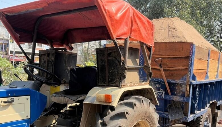 रेत/गिट्टी का अवैध परिवहन करते पाये जाने पर 04 ट्रेक्टर-ट्रॉली जप्त।