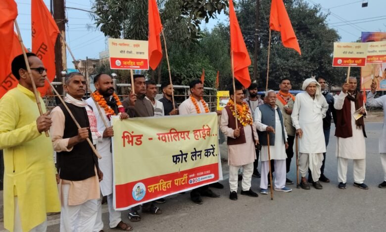 भिंड ग्वालियर हाईवे को फोरलेन बनाने, जनहित पार्टी का सड़क आंदोलन।